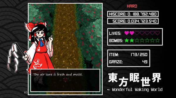 東方眠世界 ~ Wonderful Waking World, developed by Oligarchomp, published by Oligarchomp. This game have is Action, Indie category. A simplistic, dynamic Touhou fangame bullet hell shmup with a pixel art esthetic. Shoot down your enemies and dodge your way through an incessant barrage of projectiles!